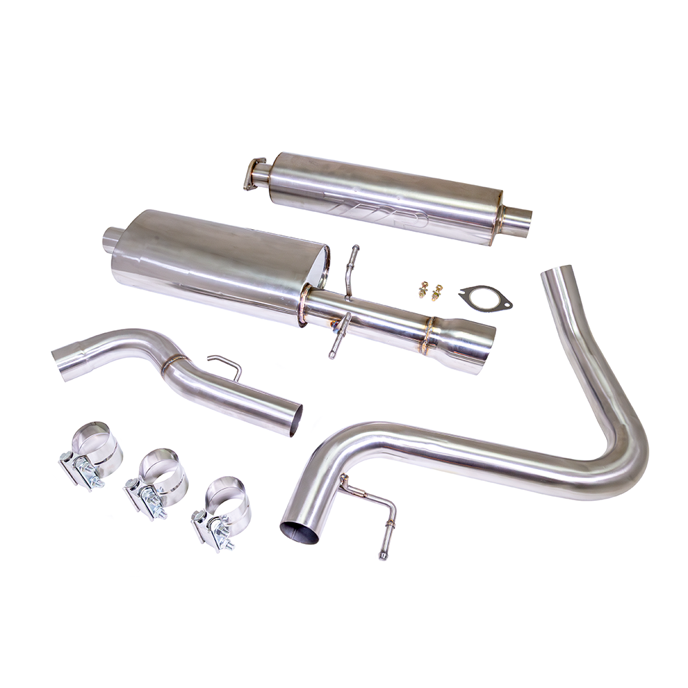 During the testing phase we setup an RTA to measure db levels at various frequencies and rpm ranges . Time consuming to say the least but in the end we came up with a solution which we now manufacture in stainless. This is an amazing sounding exhaust while still maintaining a quiet tone when it is ordered with the resonator as a stock replacement. Running this 2.5" catback with a catted downpipe, and resonator option is quite tame at idle and cruise, but louder than stock.