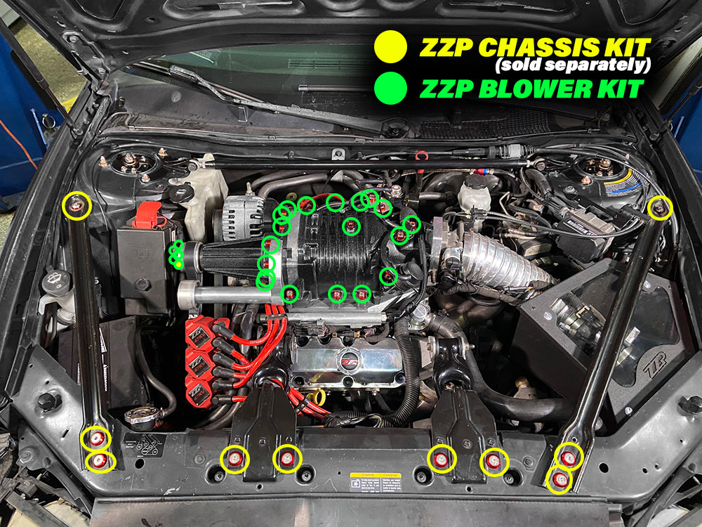 ZZPerformance has been working with the M90 supercharger for over 20 years. From full intercooler systems, porting, rebuild parts, and the M90 horsepower record. We are excited to put the cherry on top of our M90 with the blower dress up kit. Complete with nearly 40 bolts and washers, your Gen 3 or Gen 5 will be fully dressed with stainless socket hardware and anodized cup washers down to the hub bolts.