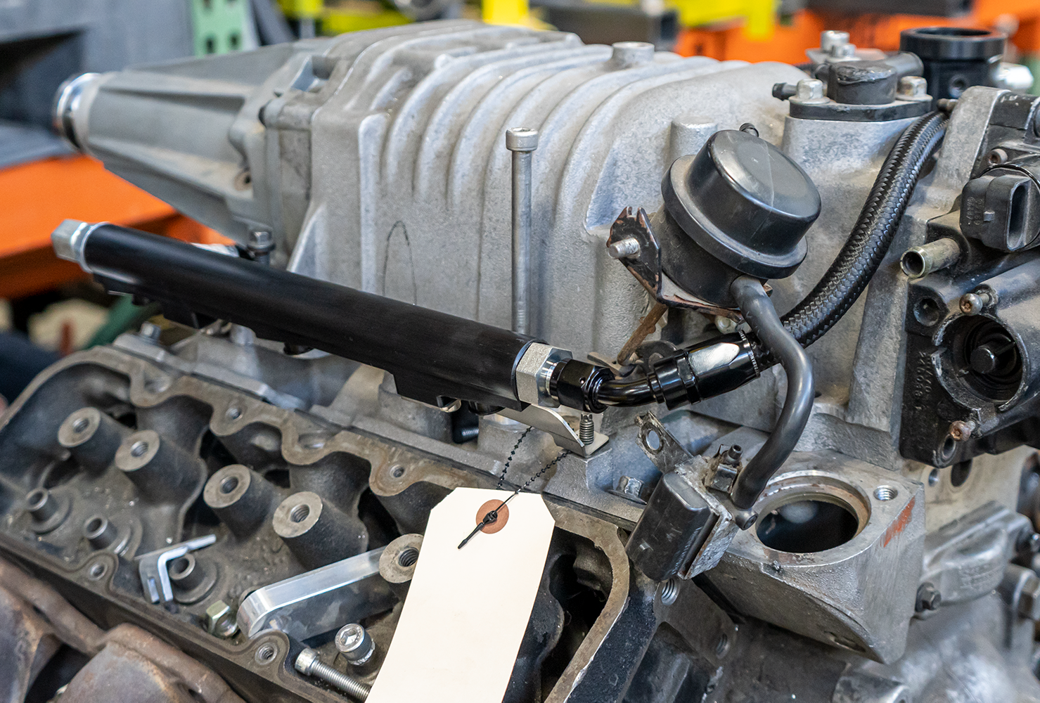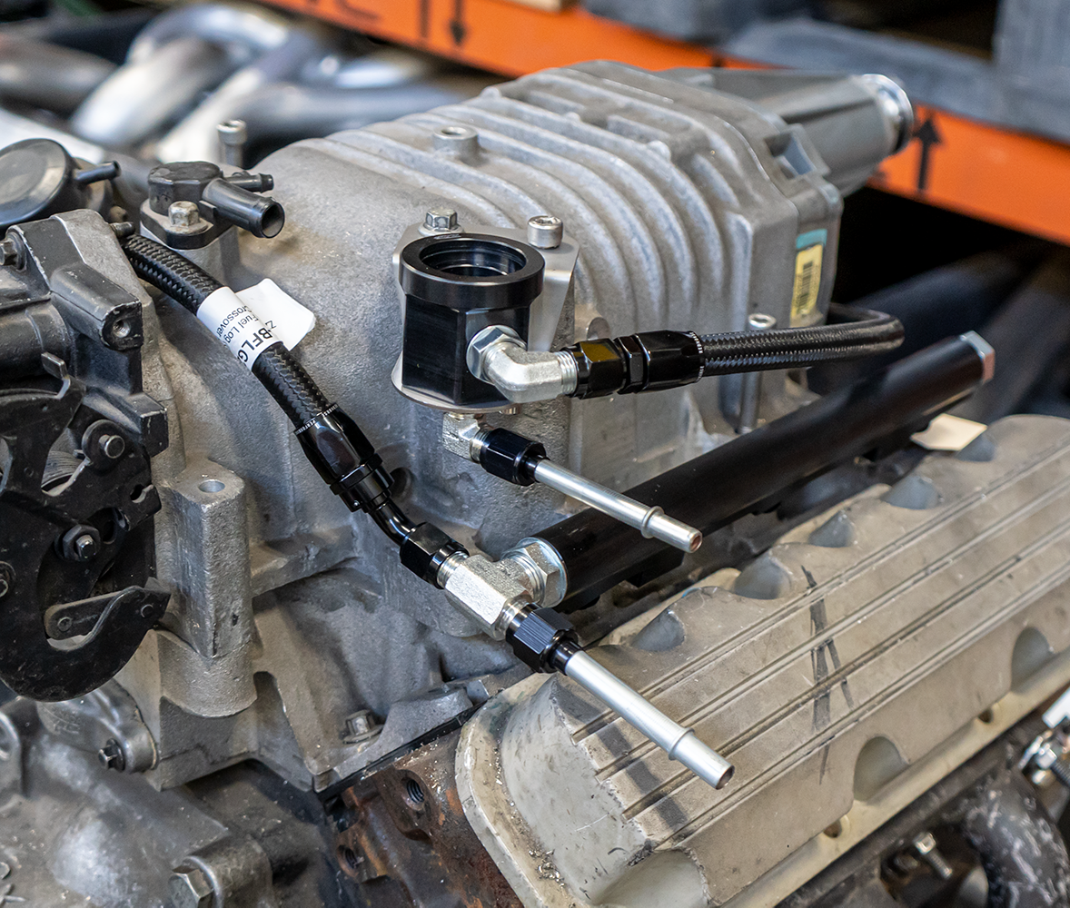 Properly installed fuel logs in product photos. Reference photos for your own installation. Photos reference a "Standard-No IC" setup. Intercooled setups will send the feed line underneath the throttle body.