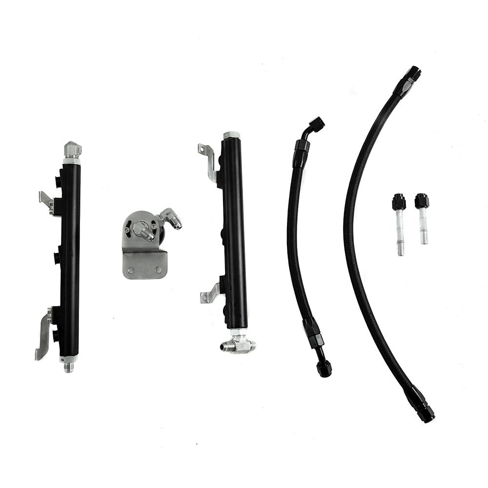 If you are looking for a better looking fuel rail solution or you just installed a phenolic spacer or intercooler these are what you need. These come as a complete kit, no need to make any trips to the hardware store, they simply bolt right on.
