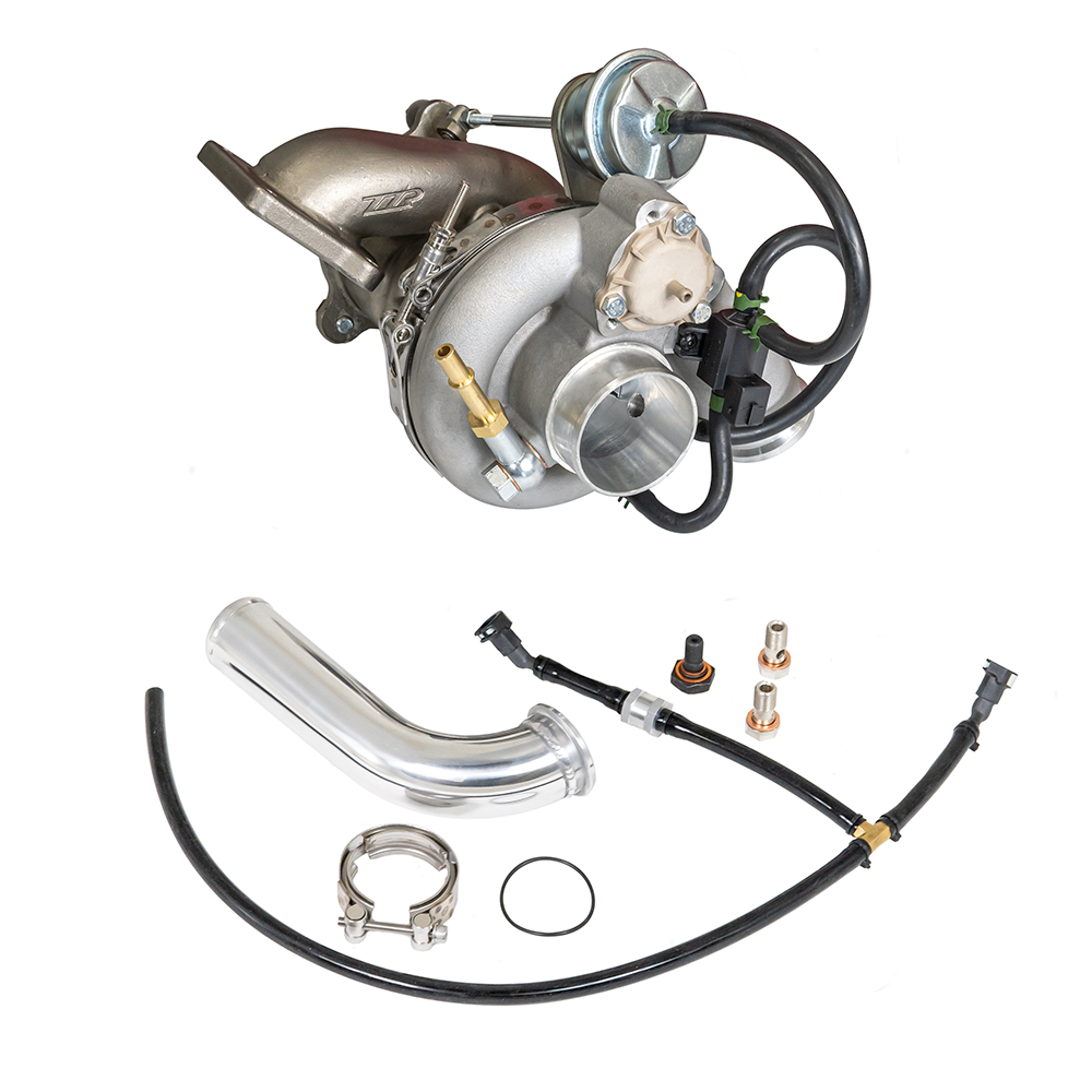 Our Z54 turbo is designed to bolt in place of the factory TD04 turbo on the LTG engine. It allows you to reuse your existing intake and exhaust parts without any adapters. While boost will still be controlled by your ECM, you will need to have your tune set up for this turbo. The wastegate duty cycle chart is the main area that needs to be modified. Since this turbo is fully manufactured and marketed as a ZZP product, it also carries our standard 2 year warranty. Comes with all necessary hardware, v-band outlet adapter, coolant, and oil lines for installation.